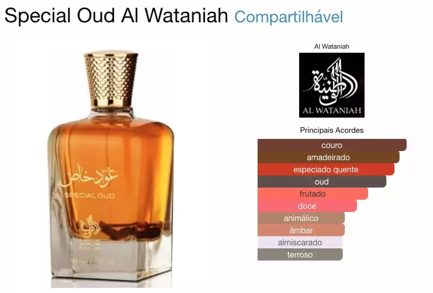 O Special Oud Eau de Parfum, da Al Wataniah, é uma fragrância unissex que combina riqueza, intensidade e sofisticação. Inspirado na tradição da perfumaria árabe, este perfume entrega uma experiência olfativa marcante, ideal para quem busca exclusividade e presença.